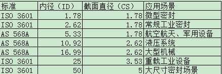 统一规定了O型圈的内径(ID)和截面直径(CS);