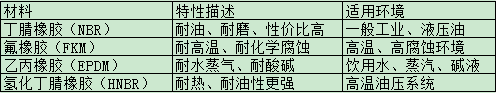 不同材料在耐介质、耐温和使用寿命方面差异明显,合理选材是确保密封可靠性的关键。